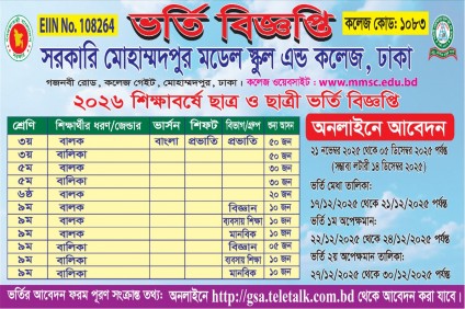 Govt.Mohammadpur Model School & College, came into existence in 2004 at Gaznabi Road near college Gate Bus stand, in the western side of Sher-E- Bangla Agricultural University and Shorawardi Medical College Hospital of Mirpur Road. Govt. Mohammadpur Model School & College was established with an ennobling vision, creating leaders of the future, by imparting holistic education, in an environment of excellence – where students and faculty from different parts of the Country come together for the purpose of learning. The faculty, teaching pedagogy and facilities are of truly world-class standards which kindle a love for learning, a respect for cultural diversity and a strong sense of social responsibility among the students. ..